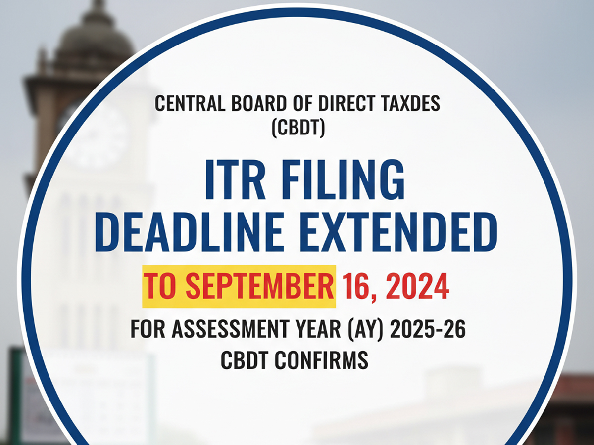 The Central Board of Direct Taxes (CBDT) has granted taxpayers additional time to file their Income Tax Returns (ITRs) for the Assessment Year (AY) 2025-26. The deadline, which was previously set for Monday, September 15, has been extended by one day to Tuesday, September 16.