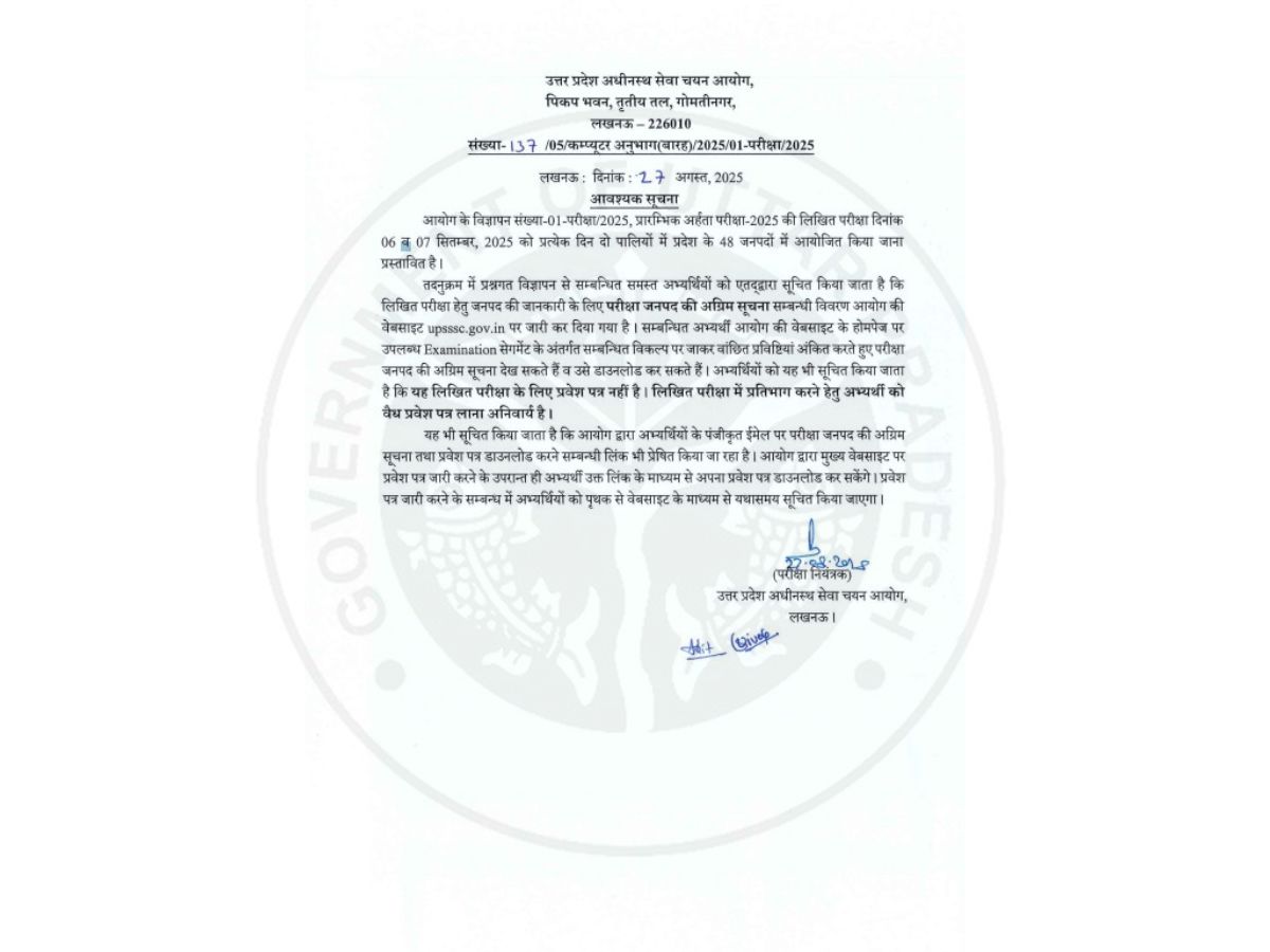 The Uttar Pradesh Subordinate Service Selection Commission (UPSSSC) has finally published the City Slip of the Preliminary Eligibility Test (PET) 2025 today, on August 27, 2025. This crucial notice enables candidates who enrolled in the UPSSSC PET test to learn about the assigned test city before the exam. The examination will be held in 48 districts of Uttar Pradesh on September 6 and 7, 2025. City Slip allows candidates to prepare their travel and accommodation plans well in advance, for a seamless examination experience.