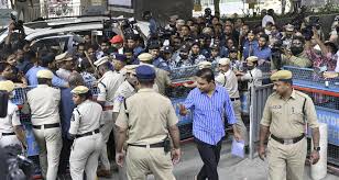 KTR’s car was surrounded by party workers who expressed their anger over the SIT notice by gathering near the police station and sloganeering against the CM. Heavy police were deployed in preparation for his arrival, who tried to remove the protesters from the area.