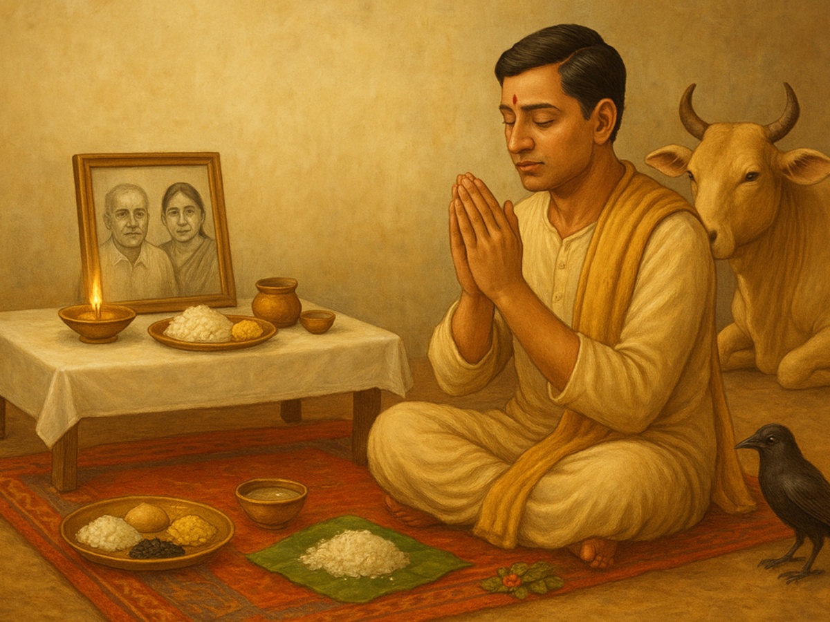 Pitru Paksha 2025 is a 16-day period observed by Hindus to honor and remember their ancestors. The ritual begins with the full moon of Bhadrapad and continues into the Ashwin month. It ends on Sarva Pitru Amavasya or Mahalaya Amavasya. During this time, devotees perform Shraddha, Pind Daan, and Tarpan to offer gratitude. Offerings are made to cows, dogs, and crows, symbolising the presence of departed souls on earth also the rituals ensure peace for ancestors and blessings for their descendants.