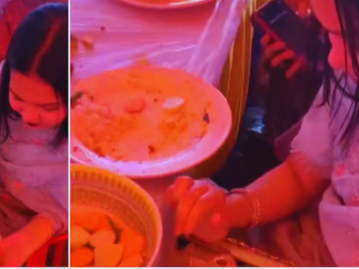 A viral video of an Indian wedding has left netizens in splits, with the internet going wild over the funny clip. In the video, a guest secretly picks up a piece of chicken from her plate.