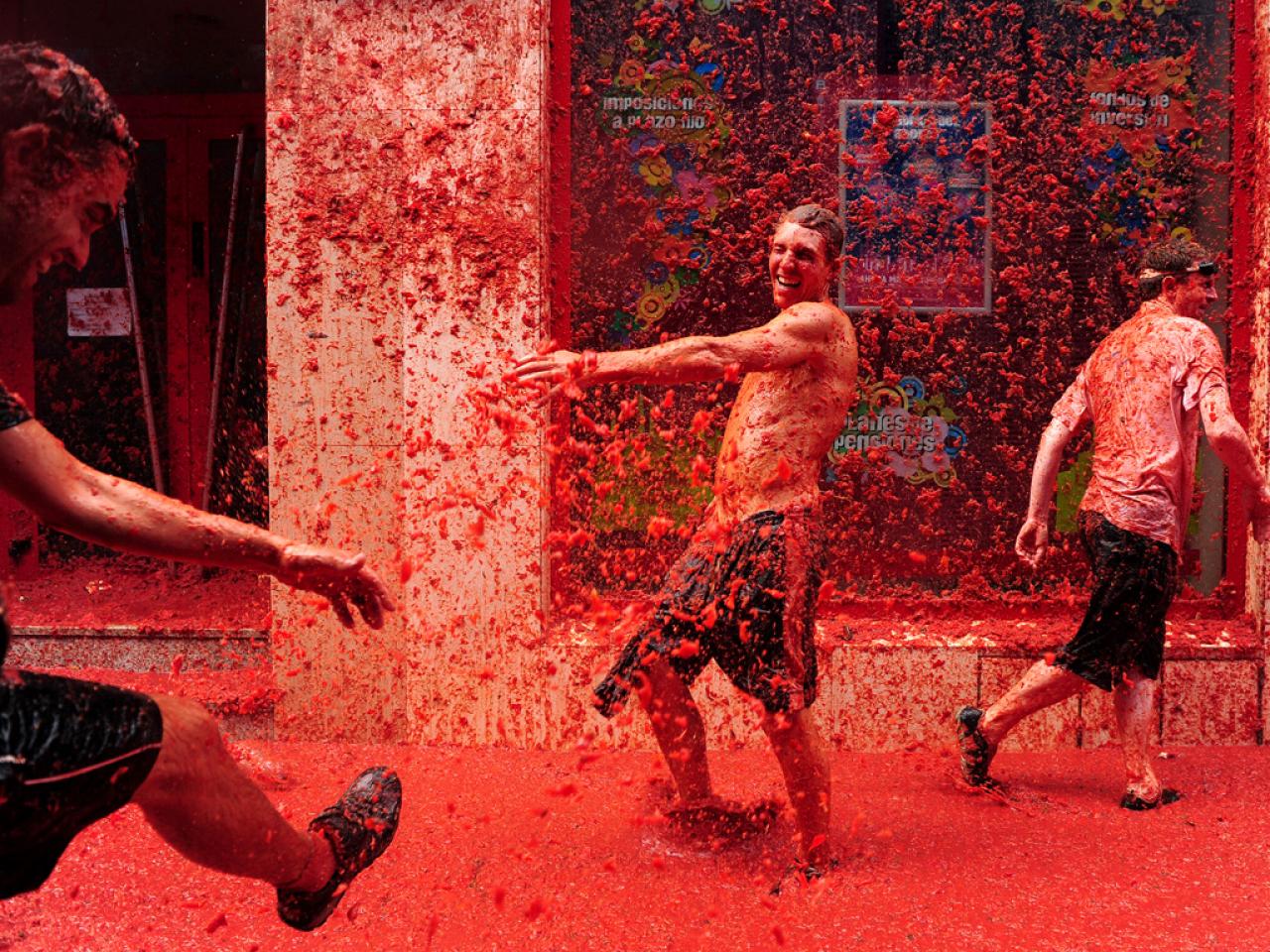 La Tomatina – Spain Held in Buñol, Spain, this festival involves thousands of people pelting each other with overripe tomatoes in a massive food fight