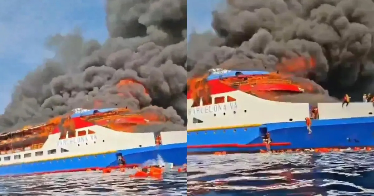 Videos circulating on social media showed chaos on board, with thick smoke and flames billowing from the rear of the ferry. Passengers were seen diving into the sea in a desperate attempt to escape the burning vessel.