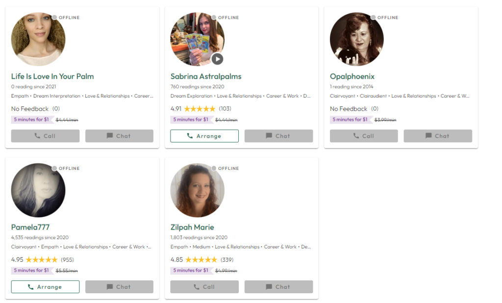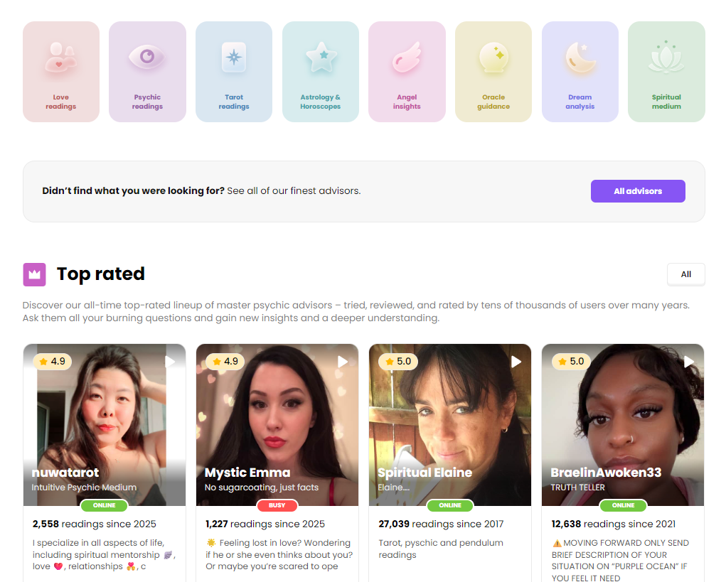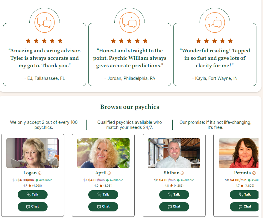 California Psychics is well-known for its strict vetting process, which also extends to their palm readers. Every practitioner is screened for skill and professionalism before being listed, so you can feel confident that your session will be both authentic and compassionate. With tiered pricing, you can choose between Popular, Preferred, and Premium readers depending on your budget and the reading depth you want.